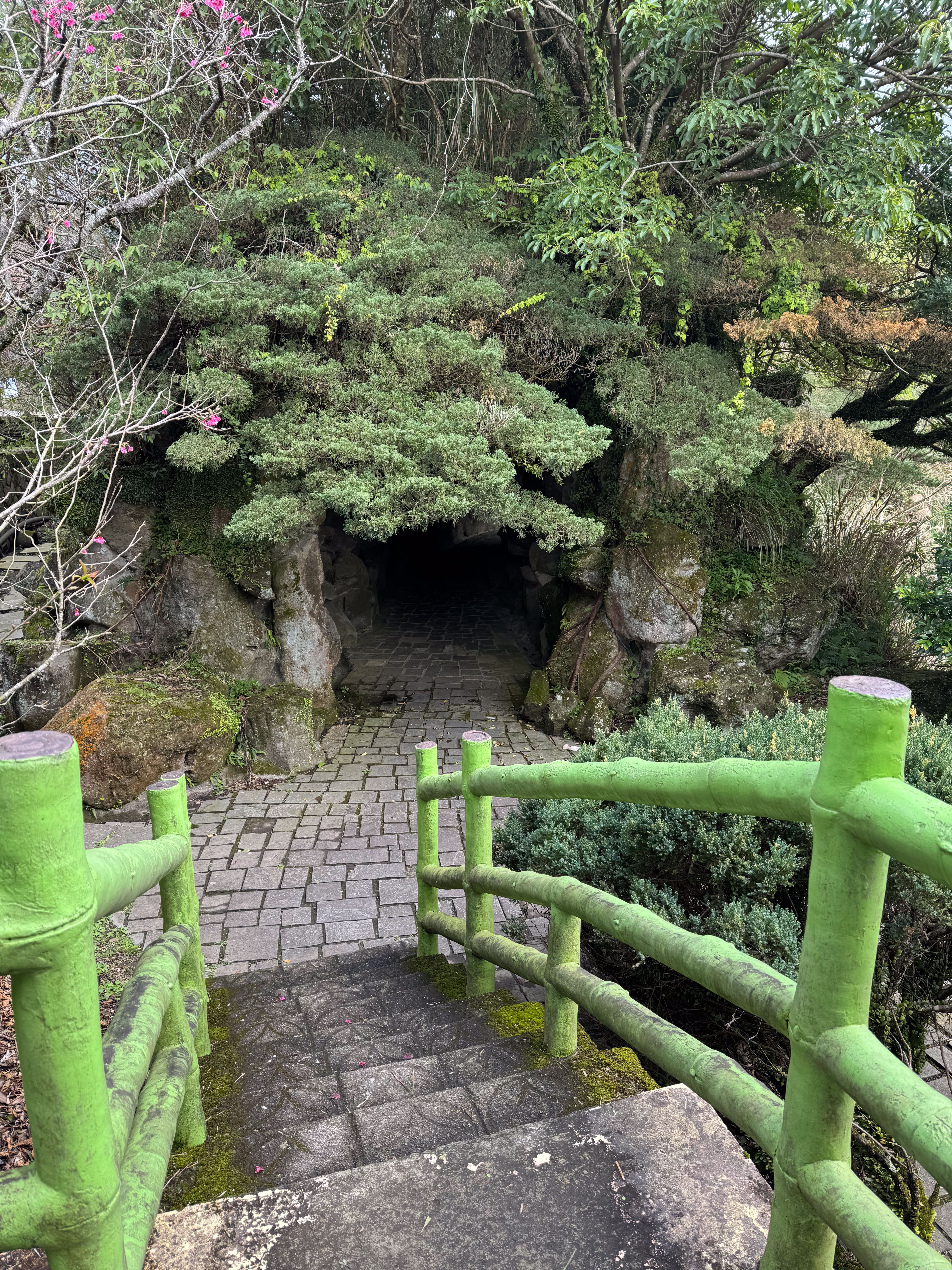 餐後到台大醫院搭巴士上陽明山,我們在第二停車場下車,奇怪地只有我倆及另外兩位學生下了車,沒下車的看來是直接到花鐘吧。在第二停車場的旅客服務中心的職員細心講解步道的方向,及哪一區的花期等等,原本說那兒的茶花都掉了(花季不是剛開始嗎?),要到另一邊花鐘那邊的櫻花較好看,我想這可能是第二停車場較少人的原因。我和 Joan 沿路步行向花鐘方向走,先經過杜鵑花園,除了杜鵑花外,也有櫻花及茶花,雖說茶花已接近尾聲,但還是開得燦爛。沿山路走向花鐘方向,在山旮旯地方意外地發現有小食亭,有一種柳暗花明又一村的感覺,我們點盡了米粉湯、臭豆腐及滷味。飯後再走不多久便到花鐘範圍,那裡的山櫻花開得很澎拜,但略嫌有點單調。